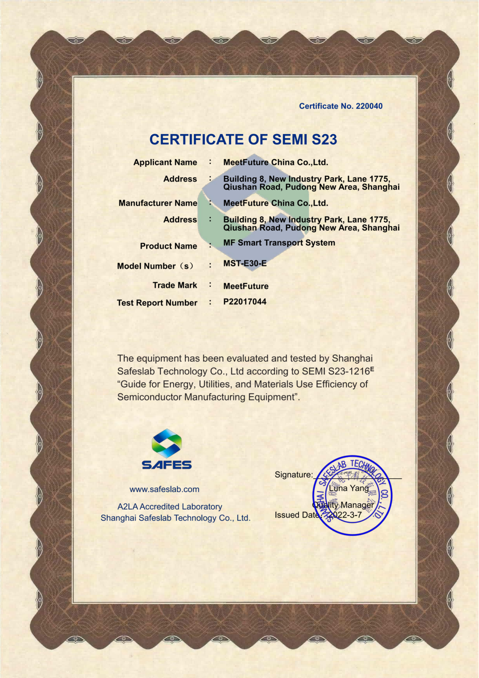 自 2018 年以来,韦德国际1946科技取得了国际标准化组织(ISO)质量管理体系(ISO 9001)、环境管理体系(ISO 14001)和职业健康安全管理体系(ISO 45001)认证。在AMHS产品技术体系领域,我们遵循半导体设备标准通讯协议,包括SEMI E37、 E82、E30、 E84、E10 等,使其易接入半导体晶圆厂MES系统来实现数据交互。